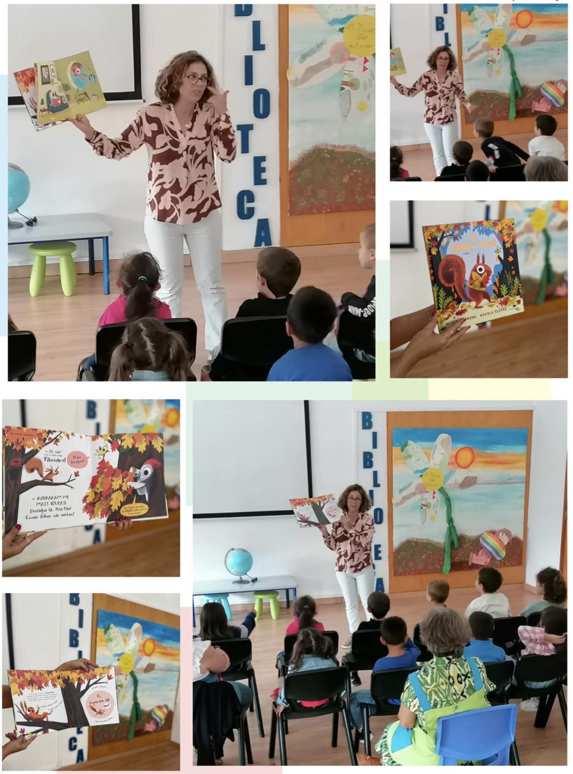 Na semana passada, no âmbito do projeto “Quartas com História”, também houve leituras para a sala 2 do JI do Fojo e como com a chegada do outono, as folhas caem, as cores mudam, apresentámos a estas crianças O Ladrão de Folhas de Alice Hemming que tem como personagem principal um esquilo que adora a SUA árvore e está, especialmente, encantado com as bonitas cores das SUAS folhas: vermelhas, amarelas, mas um dia, apercebe-se que as SUAS folhas começam a desaparecer … Instala-se o caos no bosque…😓 Afinal quem anda a roubar as folhas?🤔